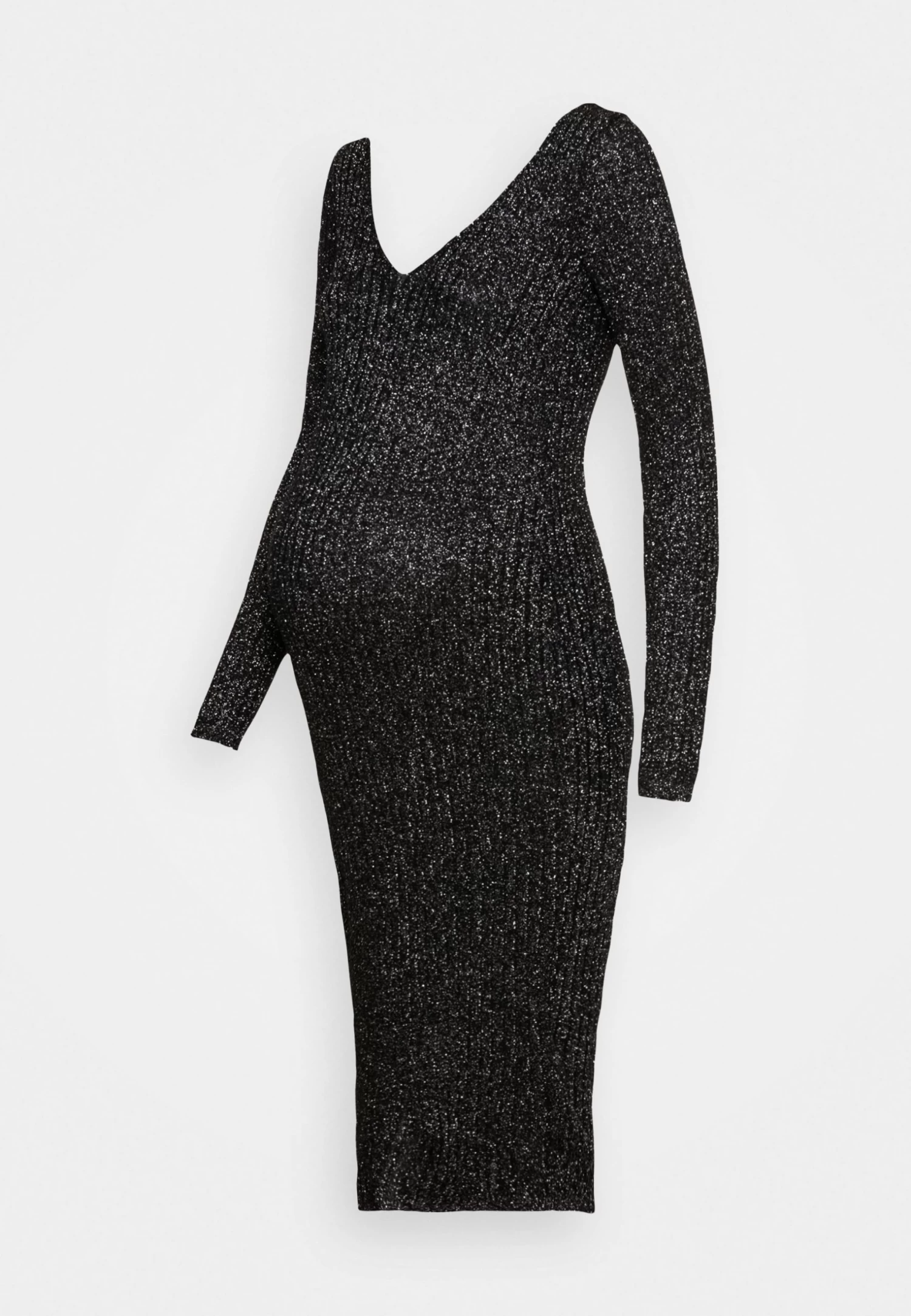 Lurex V Ausschnitt Ripp Midi Bodycon Strickkleid – Vestido De Punto – Black