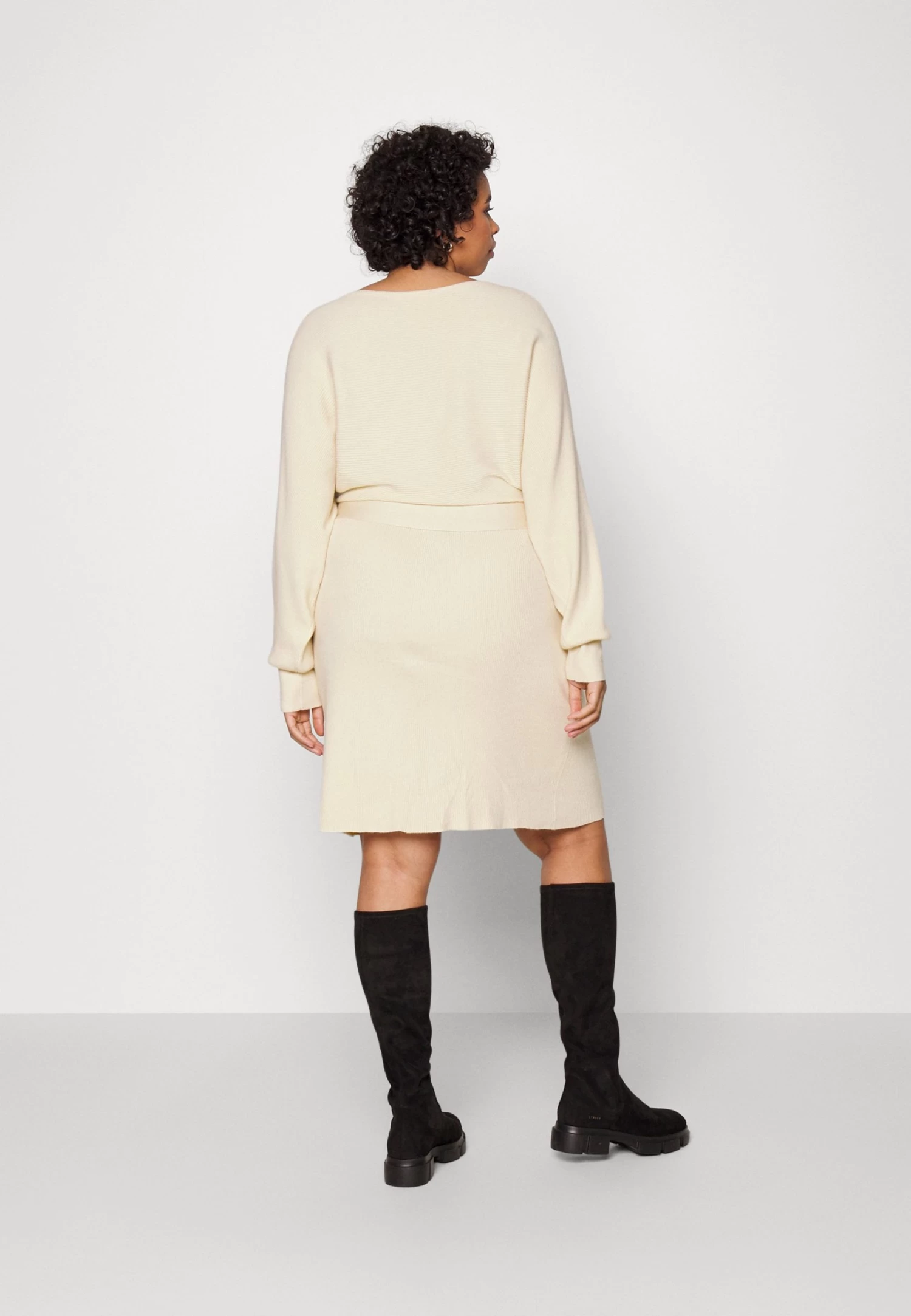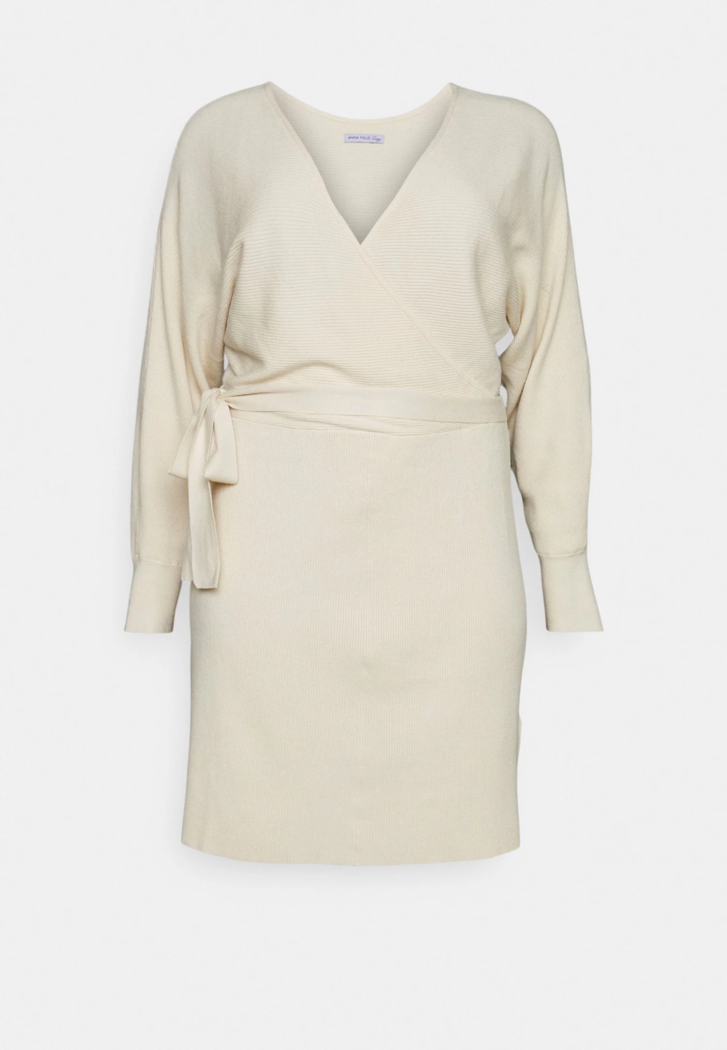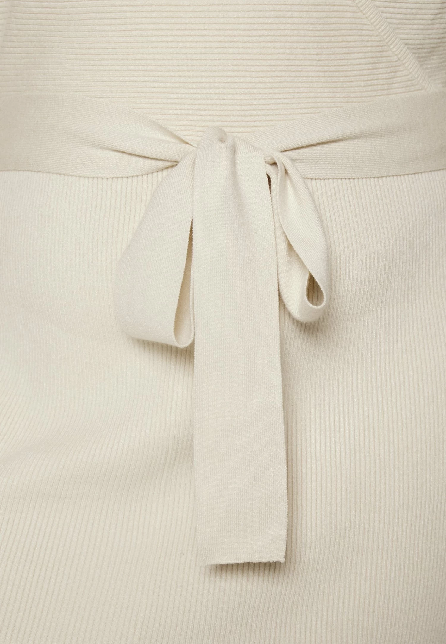 Wrap V Ausschnitt Mini Strickkleid Mit Gürtel – Vestido De Punto – Off White